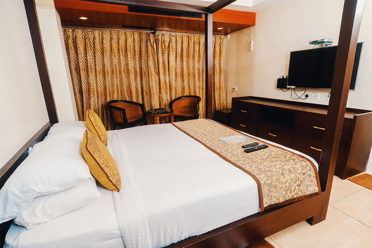 The Deluxe Rooms are elegant rooms designed to make sure you gain maximum satisfaction while you stay in the hotel. We give you hospitality and service to make sure you are happy throughout your stay. The room includes a large queen size bed with air-conditioning. All modern facilities are provided in the room such as Wi-Fi, Television, coffee kettle and an exceptional room service.