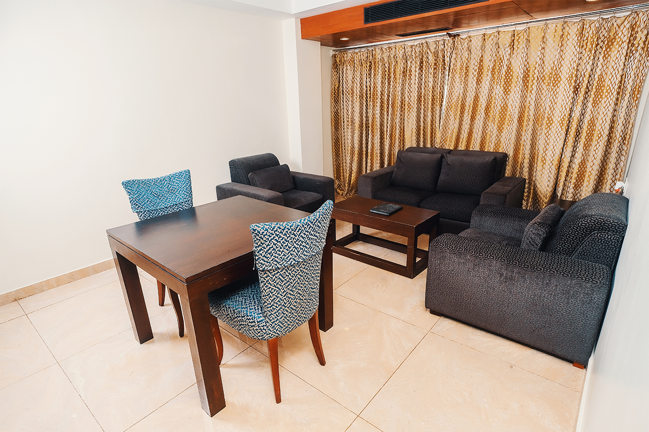 Offering nothing short of luxury, the Honeymoon Suite has one large room and a living room space to make your stay delightful. The rooms have all the facilities needed to make sure the guests at the hotel have a relaxing stay. The rooms include a large queen size bed with air-conditioning and complementary Wi-Fi, room service, laundry service, minibar, wardrobe and television are also included in the rooms.
