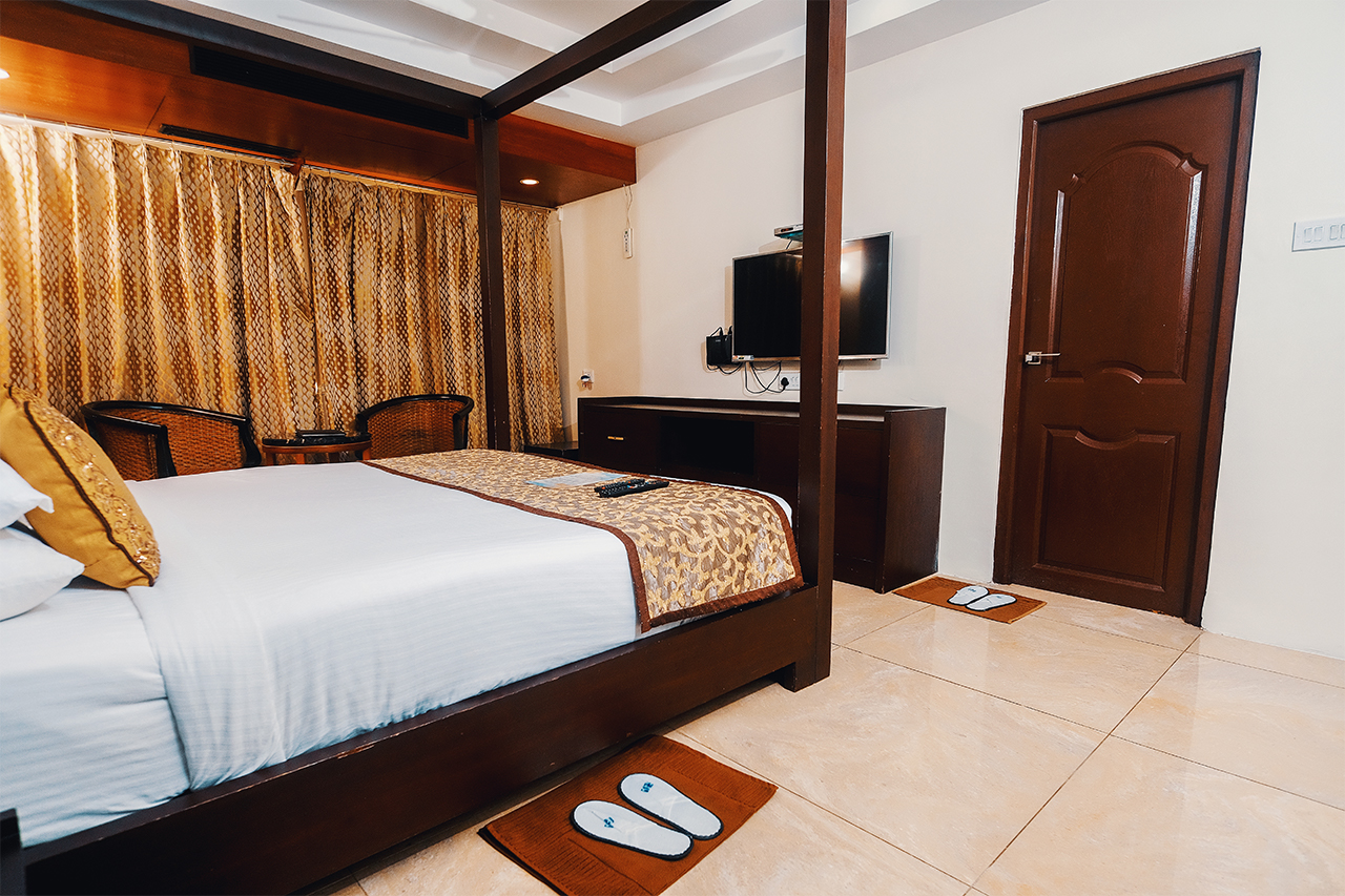 The Deluxe Rooms are elegant rooms designed to make sure you gain maximum satisfaction while you stay in the hotel. We give you hospitality and service to make sure you are happy throughout your stay. The room includes a large queen size bed with air-conditioning. All modern facilities are provided in the room such as Wi-Fi, Television, coffee kettle and an exceptional room service.