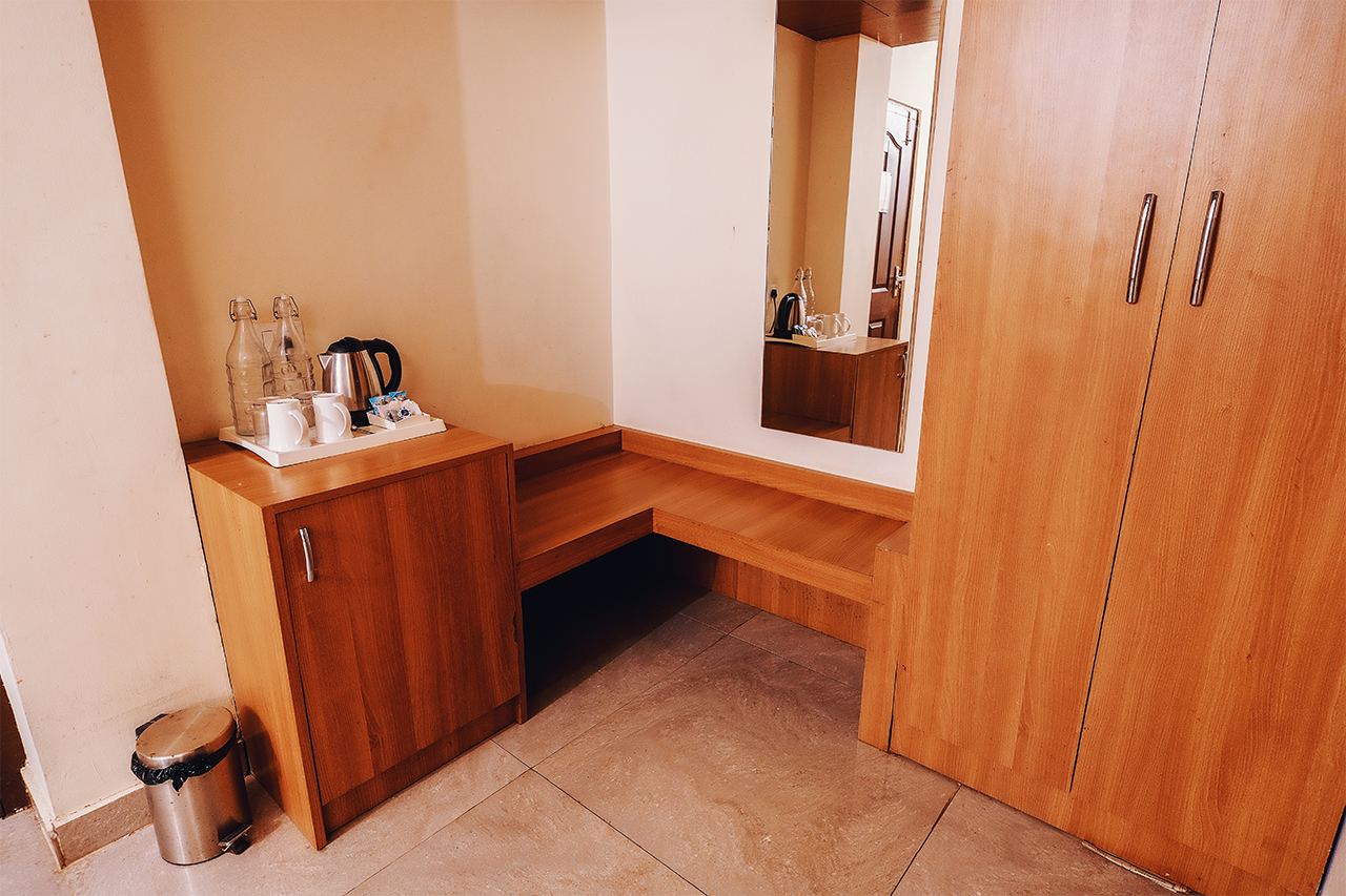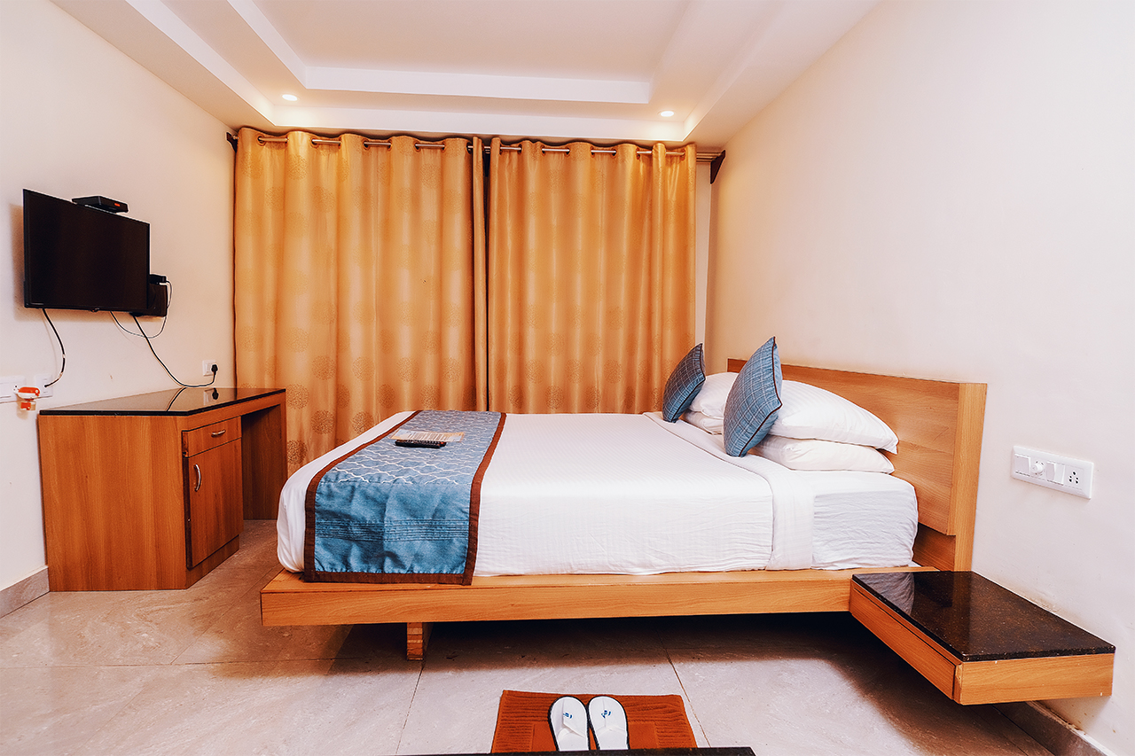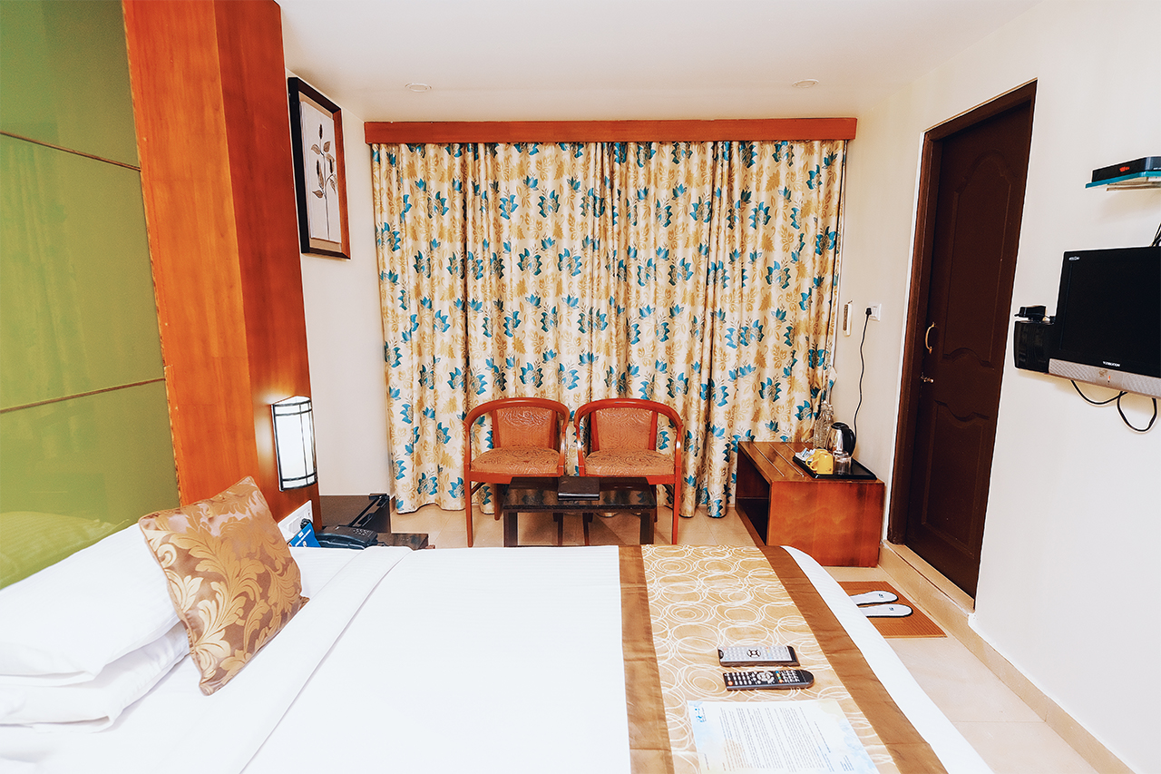 Feel the relaxation in our 218 sq ft. room with an cosy vibe, perfect for a couple or our solo travellers. These small rooms come with warm decor, LED TV, Kettle and Tea/Coffee ensemble. This room has been designed keeping the basic neccessities of traveller s in mind. What it lacks in terms of size, it makes up by its warmth and our service.